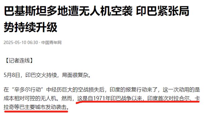 现如今,印度开启了自1971年印巴战争以来,对这些主要城市的首次袭击,可见印巴局势的紧张程度。
